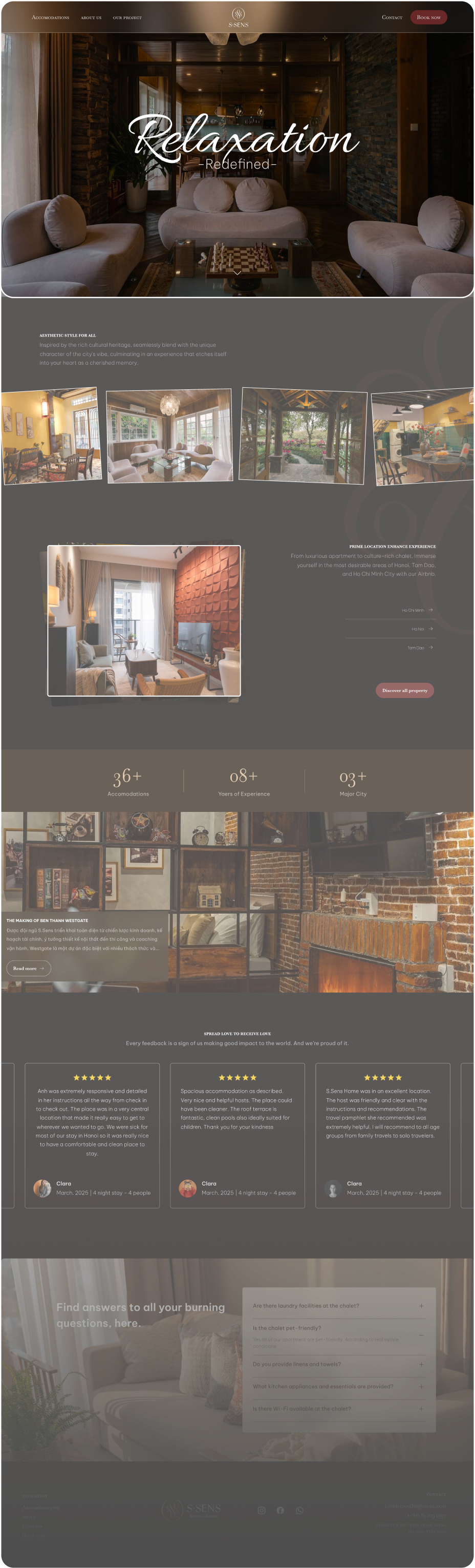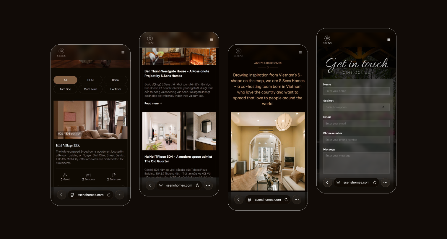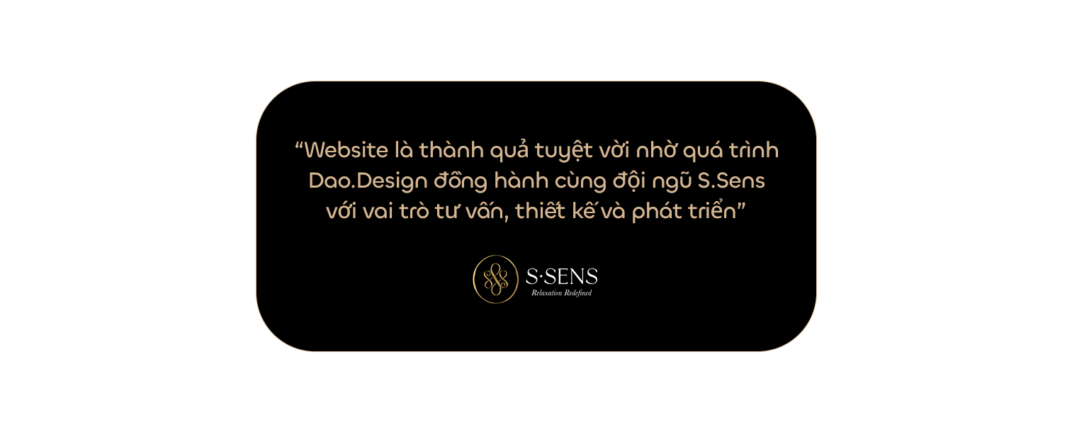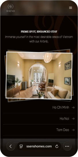 Để S.Sens có thể truyền tải mục tiêu thương hiệu đó là “Thiết kế riêng biệt giúp bạn trải nghiệm nhịp sống thành phố một cách chân thực và thoải mái nhất, nơi lưu giữ những kỷ niệm đẹp trong suốt kỳ nghỉ của bạn” trên môi trường Digital tốt hơn, chúng tôi đã giúp S.Sens định hướng hình ảnh và xây dựng website của mình.